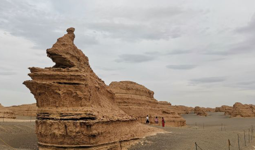 雅丹地貌在距玉門關(guān)西90公里外,有一外典型的雅丹地貌群落,東西長約25公里,南北寬約1─2公里,遇有風(fēng)吹,鬼聲森森,夜行轉(zhuǎn)而不出,人們俗稱魔鬼城。其整體象一座中世紀的古城,這座特殊的“城堡”,有城墻,有街道,有大樓、有廣場、有教堂、有雕塑,其形象生動,惟妙惟肖,令世人瞠目。這些大自然的杰作,堪稱鬼斧神工,奇妙無窮。
